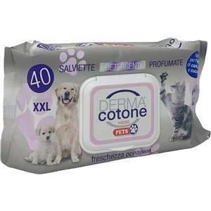 Dermacotone Salviettine Detergenti Talco per Cani e Gatti - 40 Pezzi, Azione Deodorante e Rinfrescante