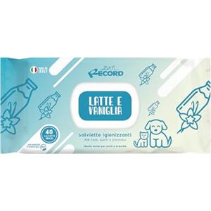 Record Salviette Detergenti Antibatteriche per Cani e Gatti - 40 pz Gusto Latte e Vaniglia, Igienizzanti per Pelo, Zampe, Muso ed Occhi