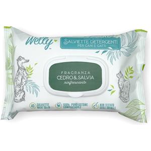 Welly Salviette Detergenti Cedro e Salvia per Cani e Gatti - 40 Salviette in Cotone Compostabile
