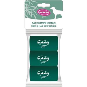 Inodorina Sacchetti Igienici Compostabili Green - 3 pz in Fibra di Mais, Biodegradabili e Pratici per Cani