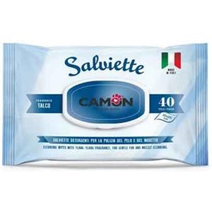 Camon Salviette Detergenti Talco 40pz per Cani e Gatti - Pulizia e Freschezza per il Pelo e le Zampe