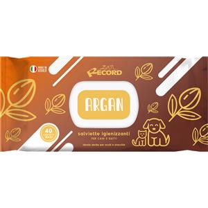 Record Salviette Igienizzanti Umide per Cani e Gatti - Confezione da 40 Pezzi, Detergenti per Pelo, Zampe, Muso ed Occhi con Antibatterico e Aroma Argan