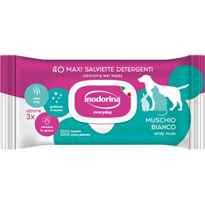 Inodorina Salviette Detergenti Muschio Bianco - 40 Pezzi - Tessuto Resistente, Umidificate e Delicate per Cani e Gatti