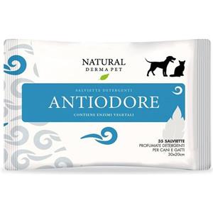 Natural Derma Pet - Salviette Detergenti Antiodore per Cani e Gatti, 35/40 Pz, con Enzimi Vegetali
