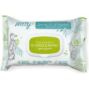 Welly Salviette Detergenti Tè Verde e Bambù per Cani e Gatti - 40 Salviette Compostabili