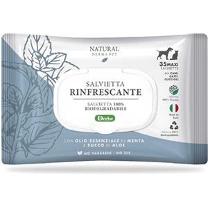 Derbe Salviette Rinfrescanti Funzionali con Menta e Aloe - 35 Salviette Biodegradabili per Cani e Gatti