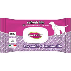 Inodorina Refresh Bio Salviette Detergenti Lavanda e Camomilla - 30 Pezzi in Cotone Biodegradabile per Cani e Gatti