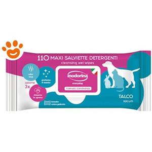Inodorina Salviette Refresh Talco - 110 Salviette Detergenti per Cani e Gatti, in Tessuto Biodegradabile, Idratanti e Deodoranti