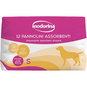 Inodorina Pannolini Assorbenti Usa e Getta S per Cani Femmine 2-5 kg, 12 pezzi con Tecnologia Traspirante e Indicatore di Bagnato