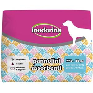 Inodorina Pannolini Assorbenti Usa e Getta XL per Cani Femmine, 12 Pezzi, Tecnologia Traspirante e Indicatore di Bagnato in Accessori e Giochi Cani e Gatti
