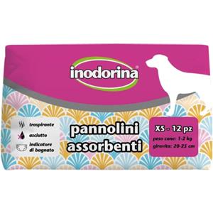 Inodorina Pannolini Assorbenti Usa e Getta XS per Cani 1-2 kg, 12 pezzi con Tecnologia Traspirante e Indicatore di Bagnato
