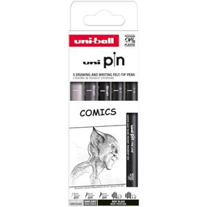 Uni-Ball Pennarelli Tecnici 5 Pezzi con Punta Calibrata da 0,7 a 1,0 mm - Nero e Grigio