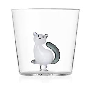 Ichendorf Milano Tumbler Tabby Cat in Vetro Borosilicato - Gatto Bianco con Coda Grigia, Capacità 35 cl