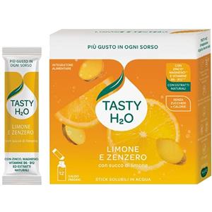HP TASTY H2O LIMONE/ZENZERO - Integratore alimentare solubile con Limone, Zenzero, Zinco, Magnesio e Vitamine B6 e B12 - 12 Stick