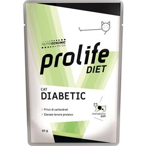 Prolife Cat Diet Wet Diabetic - Alimento Completo per Gatti Adulto, Bustina da 85g, Controllo Glucosio
