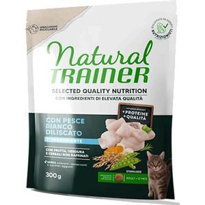 Natural Trainer Crocchette per Gatti Sterilizzati al Pesce Bianco - 300g, Alimento Completo e Bilanciato
