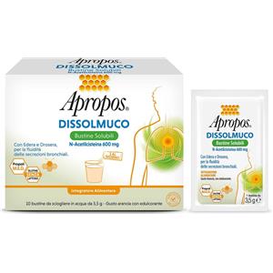 Apropos Dissolmuco 10 Bustine Solubili - Integratore con N-Acetilcisteina 600 mg e Propoli per la Fluidità delle Secrezioni Bronchiali