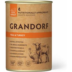 Grandorf Alimento Umido Completo per Cani Adulti - Vitello e Tacchino, 400g, Naturale e Ipoallergenico