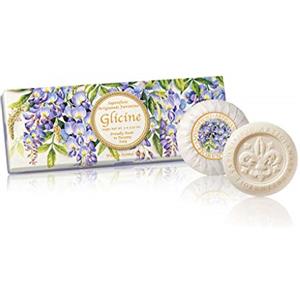 Saponificio Artigianale Fiorentino Set di Saponi al Glicine - 3 Saponette da 100 g, 100% Vegetale, Profumo Delicato e Design Elegante