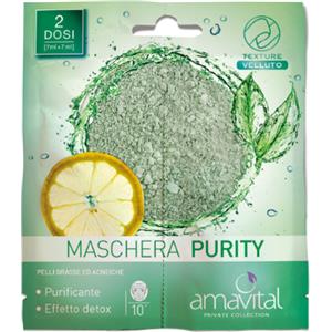Amavital Purity Maschera Purificante per Viso - 2 Pezzi da 7 ml per Pelli Grasse e Acneiche con Caolino, Limone e Tè Verde