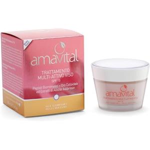 Amavital Trattamento Multi Attivo Viso 50 ml - Crema per Pelli Mature con SPF 15, Peptide Stimolante e Oro Colloidale