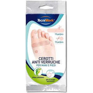 TECNIWORK Cerotti Anti Verruche Piedi - 15 15 Pezzi con Acido Salicilico al 40%, Resistenti all'Acqua e Facili da Applicare