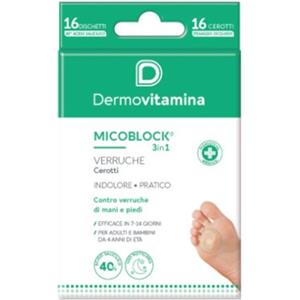 Dermovitamina MICOBLOCK 3in1 Patch per Verruche - 16 Pezzi con Acido Salicilico al 40% per Rimozione Indolore