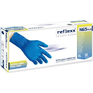 REFLEXX Guanti Nitrile Full Grip N65 Plus - Extra Lungo 29 cm, Senza Polvere, 100% Latex Free, Confezione da 50 Pezzi, Taglia L