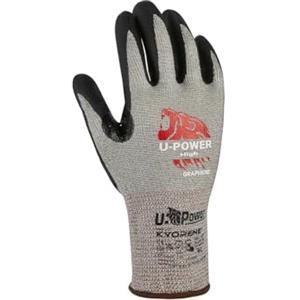 U-Power Guanti di protezione antitaglio - Taglia 08 - Grigio-Nero con polsino giallo - Fodera in grafene e palmo in schiuma di nitrile