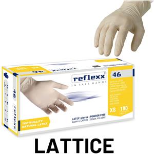 Reflexx Guanti in Lattice R46 XS - Monouso, Senza Polvere, 100 Pezzi, Bianchi, Low Protein