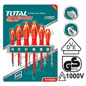 TOTAL Set di 6 Cacciaviti Isolati per Elettricista - Manico Bimateriale, Certificato VDE, Cromo Vanadio