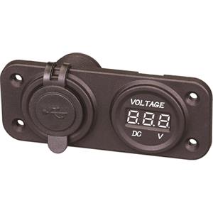 A.A.A. Pannello USB con Voltmometro e Presa Accendisigari - Impermeabile IP65, 12V, Dimensioni 105x42.5x52.7mm