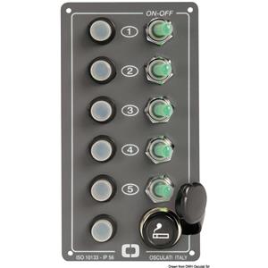 Osculati Pannello Elite 5 Interruttori Presa Accendino - IP56, Fusibili Automatici, Interruttori Luminosi