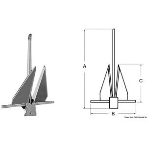 OSCULATI Ancora Danforth 6 kg in Acciaio Zincato con Lamiera a Forte Spessore
