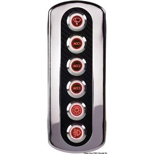 Osculati Pannello Interruttori in Fibra di Carbonio Retroilluminato LED Rosso con Interruttori a Pulsante in Acciaio Inossidabile