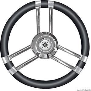 Osculati Volante C Inox/Nero 350 mm con Razze in Acciaio Inox e Corona in Poliuretano Morbido