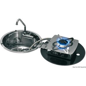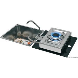 Osculati Fornello Ribaltabile 1 Fuoco con Lavello Rettangolare in Acciaio Inox con Rubinetto Pieghevole e Coperchio in Vetro Temperato