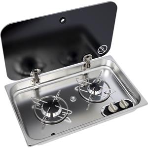 Osculati Piano Cottura 2 Fuochi Inox con Coperchio in Vetro Fumè, 530x340 mm, Bruciatori ad Alta Efficienza in Nautica