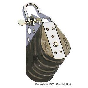 Viadana Bozzello 3 Pulegge con Grillo - Nylon Nero e Acciaio Inox, Carico di Lavoro 230 Kg