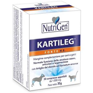 Nutrigen Kartileg Forte HE - Mangime Complementare per Cani e Gatti, 30 Tavolette da 1000 mg per Articolazioni e Strutture Ossee