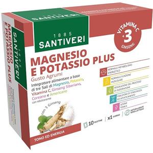 Santiveri Magnesio e Potassio Plus - Integratore per Sportivi con Vitamina C e Ginseng, 10 Bustine