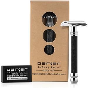 Parker Rasoio di Sicurezza 26C - 3 pezzi con piastra a pettine, manico 9,5 cm in nero e cromo