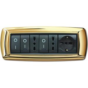 ELETTROCANALI Mascherina Mylife 7 Moduli Oro - Piastra a muro in tecnopolimero con finitura in oro 24 kt