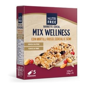 Nutrifree Barrette Cereal Mix Wellness - Snack Senza Glutine con Fiocchi di Riso e Mais, Mirtilli Rossi e Semi, Fonte di Fibre - 5 x 28 g