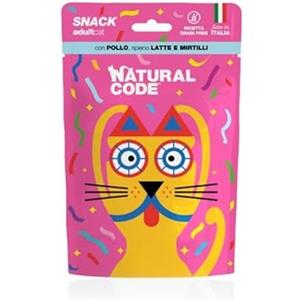 Natural Code Snack Gatti Adulti con Pollo, Latte e Mirtilli - 60g, Grain Free, con Antiossidanti e 12 Vitamine