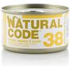Generico Natural Code Umido Gatto Adult gusto TONNO, MANZO e OLIVE, Numero 38, alimento completo in SFILACCETTI per gatti adulti di tutte le taglie, altamente digeribile | 12 scatolette da 85 grammi l'una.