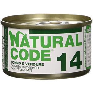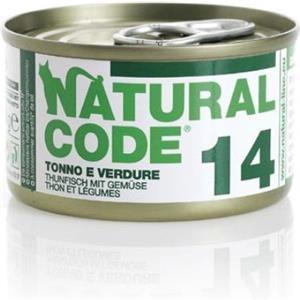 Generico Natural Code Cibo Umido Sfilaccetti per Gatti, alimento completo per gatti adulti di tutte le taglie e razze, N 14 Tonno e Verdure, 12 scatolette da 85 grammi l'una, 12x85 gr.