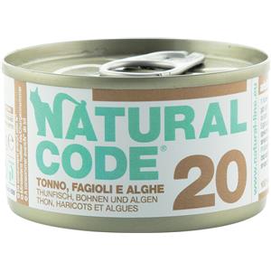 Natural Code 20 - Alimento Umido per Gatti Adulto al Tonno, Fagioli e Alghe - 85g