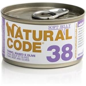 Natural Code 38 Cibo Umido per Gatti - Tonno, Manzo e Olive in Jelly 85g - Senza Conservanti e Coloranti