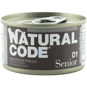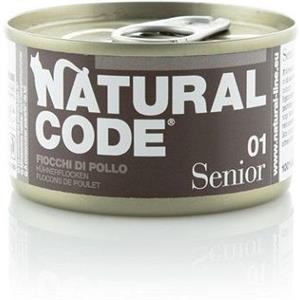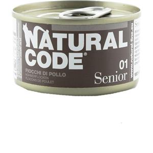 Natural Code 01 Cibo Umido per Gatti Anziani - Fiocchi di Pollo e Riso - Lattina da 85 gr